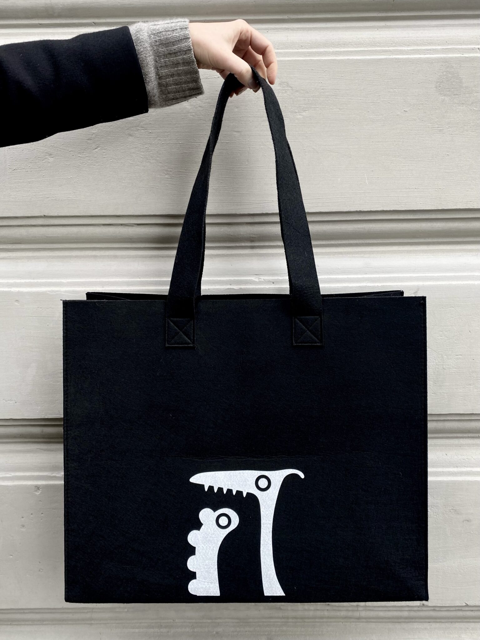 The shopper has a felt feel and is made of 100% recycled polyester.